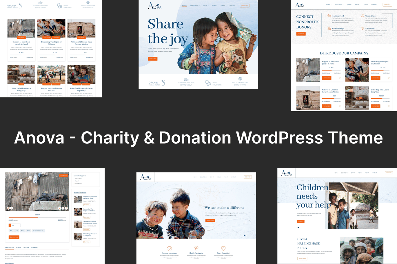 Anova is a purpose-built WordPress theme tailored for charitable organizations, fundraising campaigns, and non-profits aiming to make a strong online impact. Developed with a modern and clean design aesthetic, Anova leverages Elementor for drag-and-drop customization, enabling users without coding skills to create compelling, engaging pages effortlessly. The theme is fully responsive and retina-ready, ensuring your message reaches supporters clearly on any device. With integrated donation functionality powered by WooCommerce and GiveWP compatibility, Anova supports seamless fundraising management. It also includes features like event management, multiple homepage layouts, and extensive customization options through the WordPress Customizer, making it a versatile tool for nonprofits. Its SEO-friendly architecture ensures your cause gains visibility in search engines, while the optimized performance guarantees fast load times to keep visitors engaged.