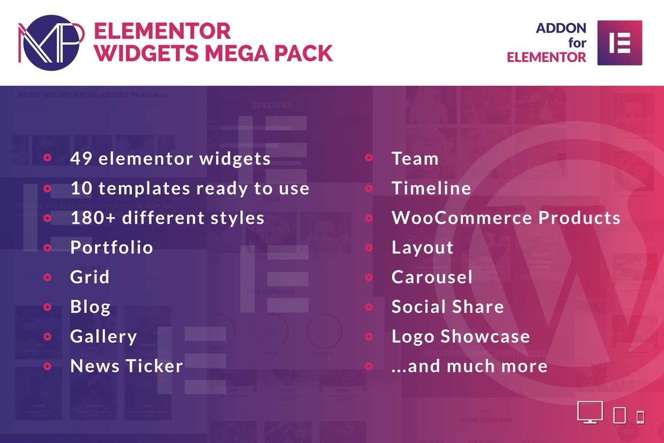 • 60+ unique Elementor widgets