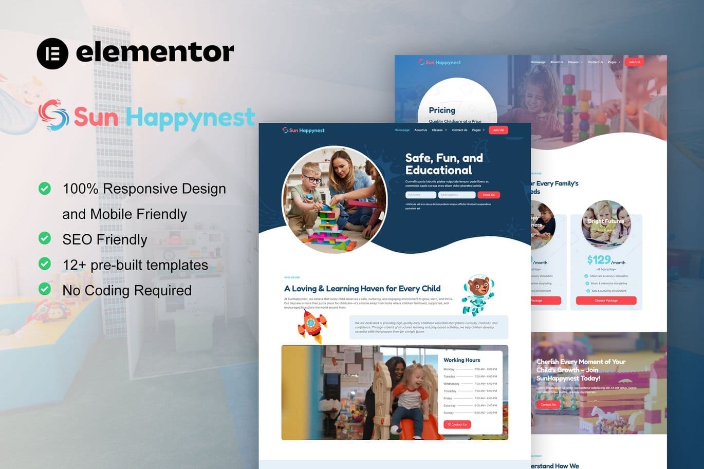 SunHappynest – Kindergarten & Child Care Elementor Pro Template Kit